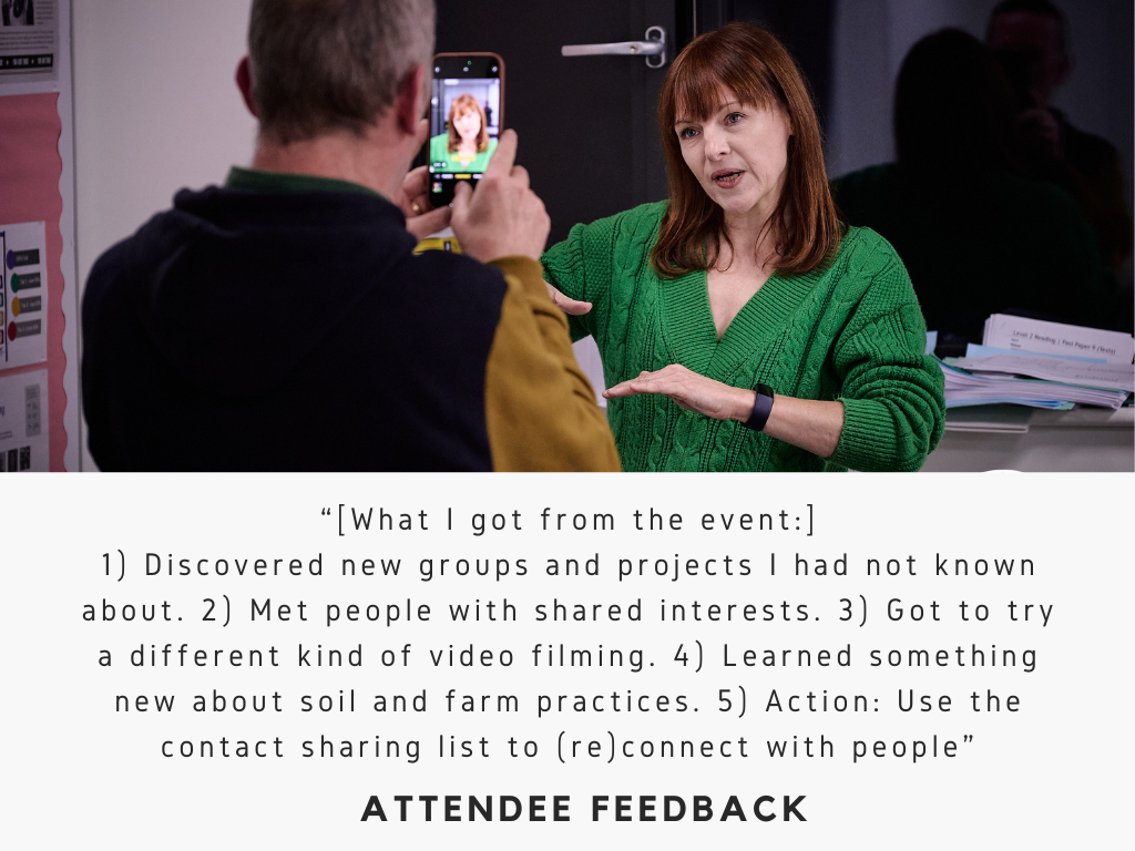 The first focus for this event series was learning and ‘incubation’ for anyone with a sustainable idea or project. A number of open, accessible workshops provided communication skills to help project leaders learn how to engage their audience more effectively (be that volunteers, customers, funders etc).